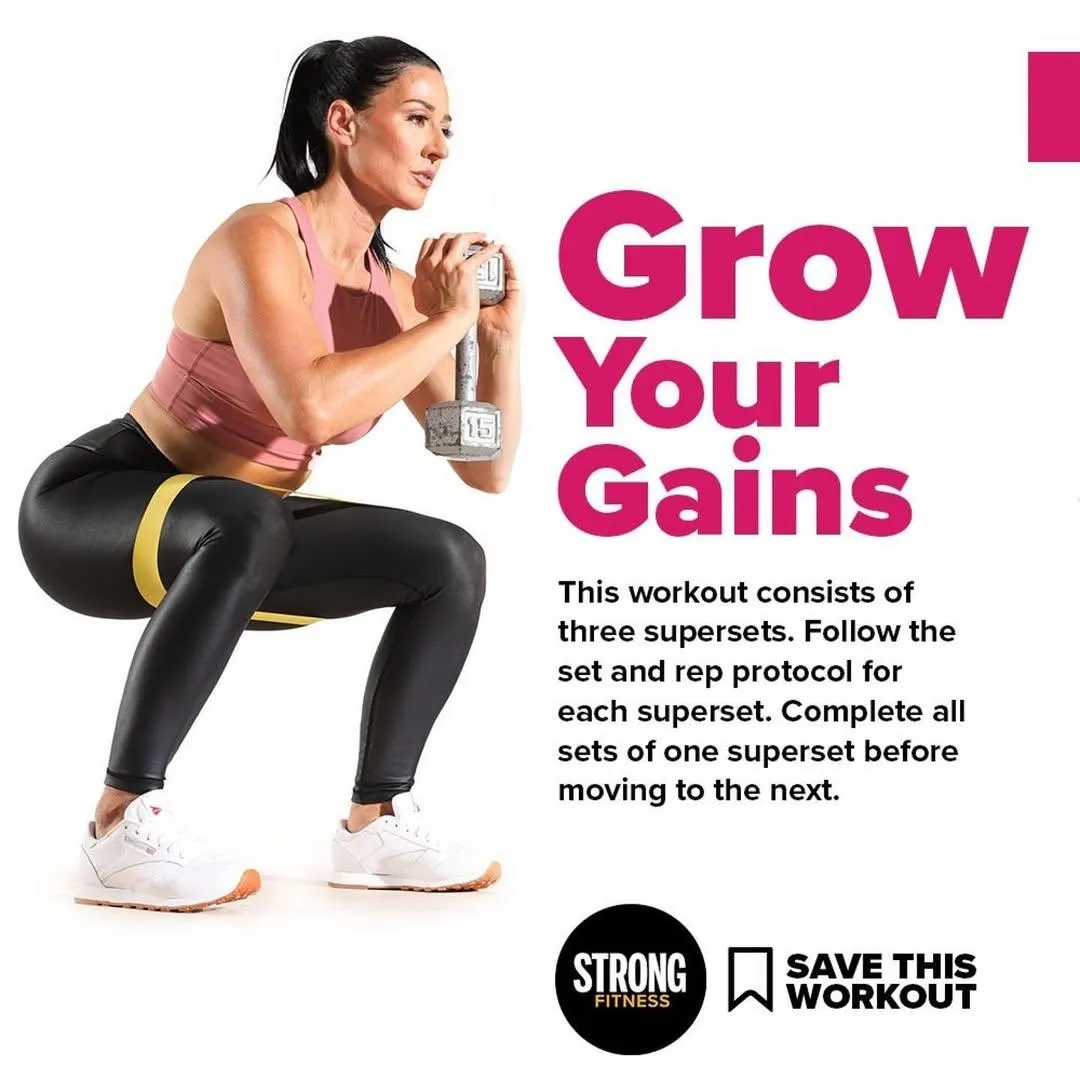 The “Wake Up Your Glutes” workout from STRONG Fitness Magazine is a glute-activating routine using a resistance band and dumbbell. It includes three supersets with exercises like hip thrusts, frog pumps, single-leg lifts, and squats—designed to strengthen and wake up underactive glutes.